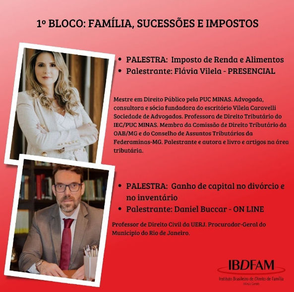 Nossa sócia fundadora Flávia Vilella participou do último evento do ano do IBDFAM/MG, em 2022, com a palestra “Imposto de Renda e Alimentos”.